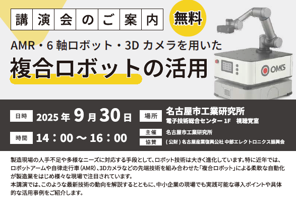 講演会「AMR+6軸ロボット+3Dカメラを用いた複合ロボットの活用」を開催いたします